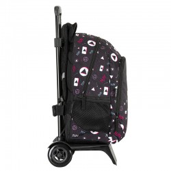 Beinhaltet: Abnehmbarer Junior-Rucksack mit dem TikTok Play-Logo, zwei Hauptfächer mit Reißverschluss, großformatige Vordertasche, Innenfutter, seitliche Mesh-Flaschentasche, gepolsterte, verstellbare und atmungsaktive Schultergurte, gepolstertes Rückenteil, patentiertes System, das versteckt werden kann In einem Rucksack-Trolley, Trolley, ultra-leise Gummi- und Antivibrationsräder, leichte und widerstandsfähige Struktur, Befestigungsscheiben an der Basis, Basis mit Rillen und oberer Lasche zur Anpassung an Rucksäcke jeder Größe, einfaches Zusammenklappen für minimalen Platzbedarf und doppelte Kapazität Achse mit Rostschutzbeschichtung, reflektierende Bänder an den Schultergurten, Griff oben