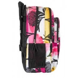 Enthält: 1 doppelter Schulrucksack in Lila, Weiß und Schwarz mit Blumenmuster, aufgesticktes Logo, System anpassbar an einen versteckten Rucksack-Trolley, gepolsterte, transportable und verstellbare Träger, gepolsterter Rücken für mehr Komfort, schützendes Innenfutter, reflektierende Bänder an den Schultergurten, Griff oben, doppelter Innenraum mit Reißverschluss, Vordertasche mit Reißverschluss und seitliche Netztasche für Flaschen.