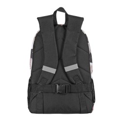 Enthält: 1 Junior-Rucksack in Weiß und Schwarz mit speziellem Design der Cutie-Linie von Miel & Limón, Hauptfach mit Reißverschluss, Fronttasche mit Reißverschluss, Innenfutter, versteckte Flaschenhaltertasche aus Netzmaterial, gepolsterte, verstellbare und atmungsaktive Schultergurte, gepolsterte Rückenpartie, patentiertes verstecktes System zum Anpassen an einen Rollwagen, reflektierende Bänder und Tragegriff oben am Rucksack.