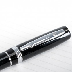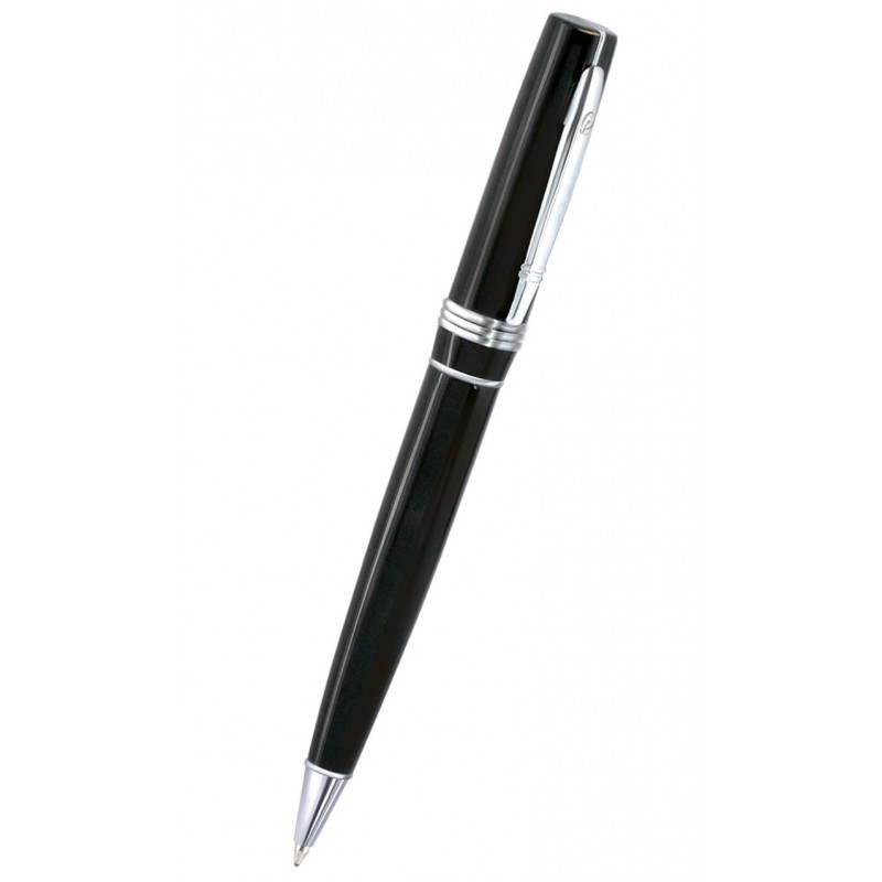 Enthält: Geschenkset mit 1 Kugelschreiber mit Schaft und schwarzer Kappe, Clip, drehbarer Kappe zur Regulierung des Minenvorschubs und eingraviertem Markenlogo auf der Spitze des Clips und 1 Etui für den Stift, außen gepolstert und innen silbern gefüttert Logo.