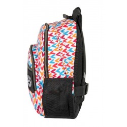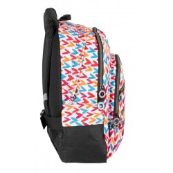 Es ist ein Junior-Rucksack, abnehmbar, aus hochwertigen Polyestermaterialien und mit Drucken in lebhaften Tönen. Darin können wir die doppelte Polsterung im Stützbereich des Rückens oder die ebenfalls gepolsterten Träger hervorheben, die an deine Maße anpassbar und atmungsaktiv sind. Darüber hinaus verfügt er über reflektierende Streifen an den Trägern, einen PVC-Griff oben, hochwertige Reißverschlüsse, personalisierte Griffe und eine doppelte Verstärkung am Boden, um den Rucksack unter anderem vor Stößen und Kratzern zu schützen.