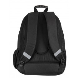 Der Rucksack besteht aus einer doppelten Abteilung, einer großen, innen gefütterten Tasche, einer Vordertasche mit zwei Abteilungen und einer seitlichen Netztasche für Flaschenhalter.
