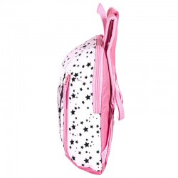 Enthält: 1 weiß-rosa Kindergartenrucksack mit einem besonderen Design aus der Doll-Linie, das das Bild eines Mädchens mit Tieren und schwarzen Sternen enthält, Hauptfach mit Reißverschluss und Stoffzieher, Seitentasche außen mit Reißverschluss und Stoffzieher , gepolsterte Griffe mit verstellbarer Größe und Ausweis.